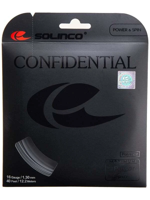 Solinco Confidential is a newly developed, high-performance and versatile co-polyester string designed to offer playability and control while generating extreme power and intense spin and bite. Utilizes a newly developed chemical formula in combination with the high-powered polyester monofilament fibre designed and shaped to generate maximum power and control while amplifying the spin and bite intensity of the ball.